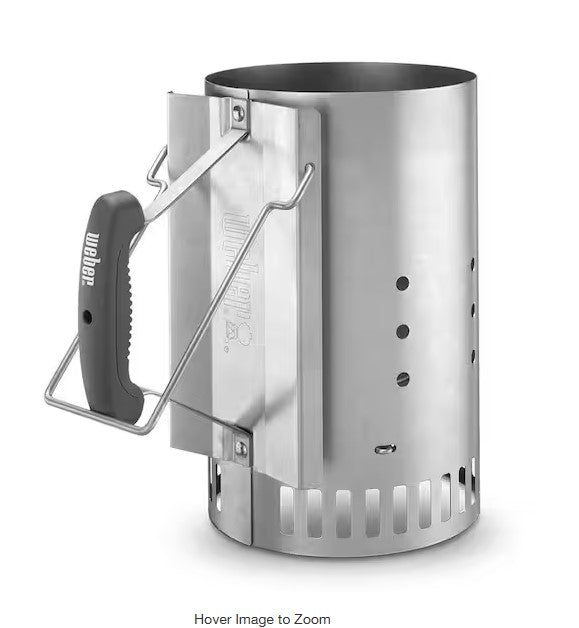 Get your charcoal glowing and ready to go in just minutes with the Weber Rapidfire Chimney Charcoal Starter. Tackle high-volume cooking with the extra-large capacity bin. It's made from aluminized steel and the perfect grill accessory to get your Weber charcoal grill going!
