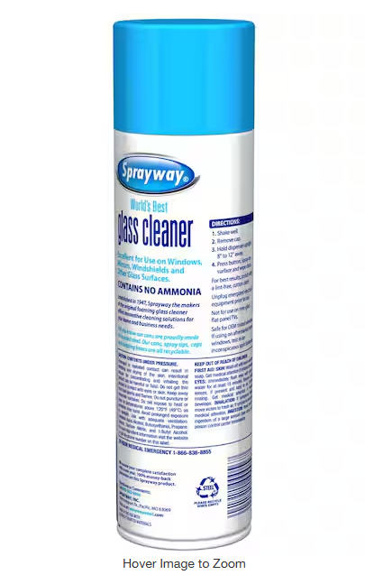Sprayway 23 oz. Glass Cleaner is a foaming cleaner you can use on windows, mirrors and other glass surfaces whenever you want a crystal-clean shine. It cleans thoroughly, dries quickly and requires no rinsing. Dissolves dirt, grease, grit and grime every time.