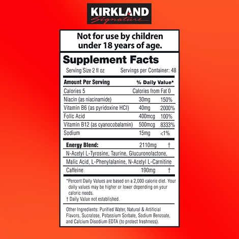 Kirkland Signature Extra Strength Energy Shot Berry, Pomeganate and Grape, 2 oz, 48 Count