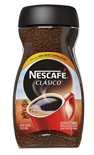 Details: NESCAFE CLASICO Instant Coffee — Dark Roast — 10.5 oz. Jar: NESCAFÉ CLÁSICO Dark Roast instant coffee delivers rich, bold flavor to your cup in an instant, with quality you can taste in every sip. This distinctive dark roast is crafted with 100% real coffee. We use only the finest quality, respectfully grown arabica and robusta coffee beans and carefully roast them to capture their full flavor and aroma. So, whether you like your coffee black or prefer to personalize it by adding milk, cream, syrup or sugar, NESCAFÉ lets you discover a rich and remarkably unique coffee in an instant. Savor an irresistible cup of coffee, instantly with the world’s best-selling coffee brand,* NESCAFÉ.