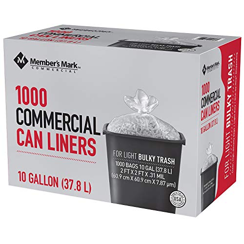 Details: These 7-10 gallon commercial trash bags by Member's Mark are made for businesses where light, bulky refuse is the norm and frequent bag changes are a necessity. This package contains 1000 bags.