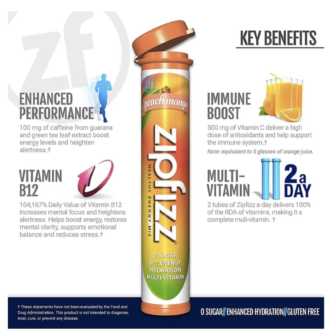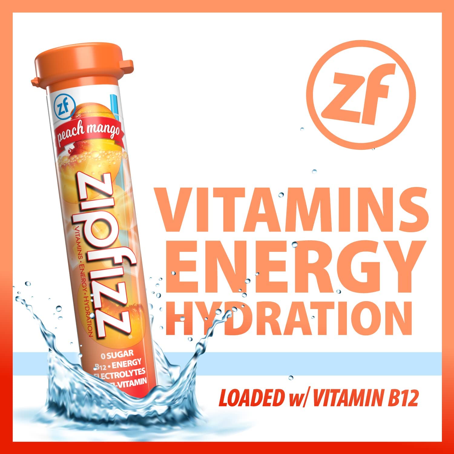Zipfizz Energy Drink Mix, Hydration with B12 and Multi Vitamins, Peach Mango, 30 Count